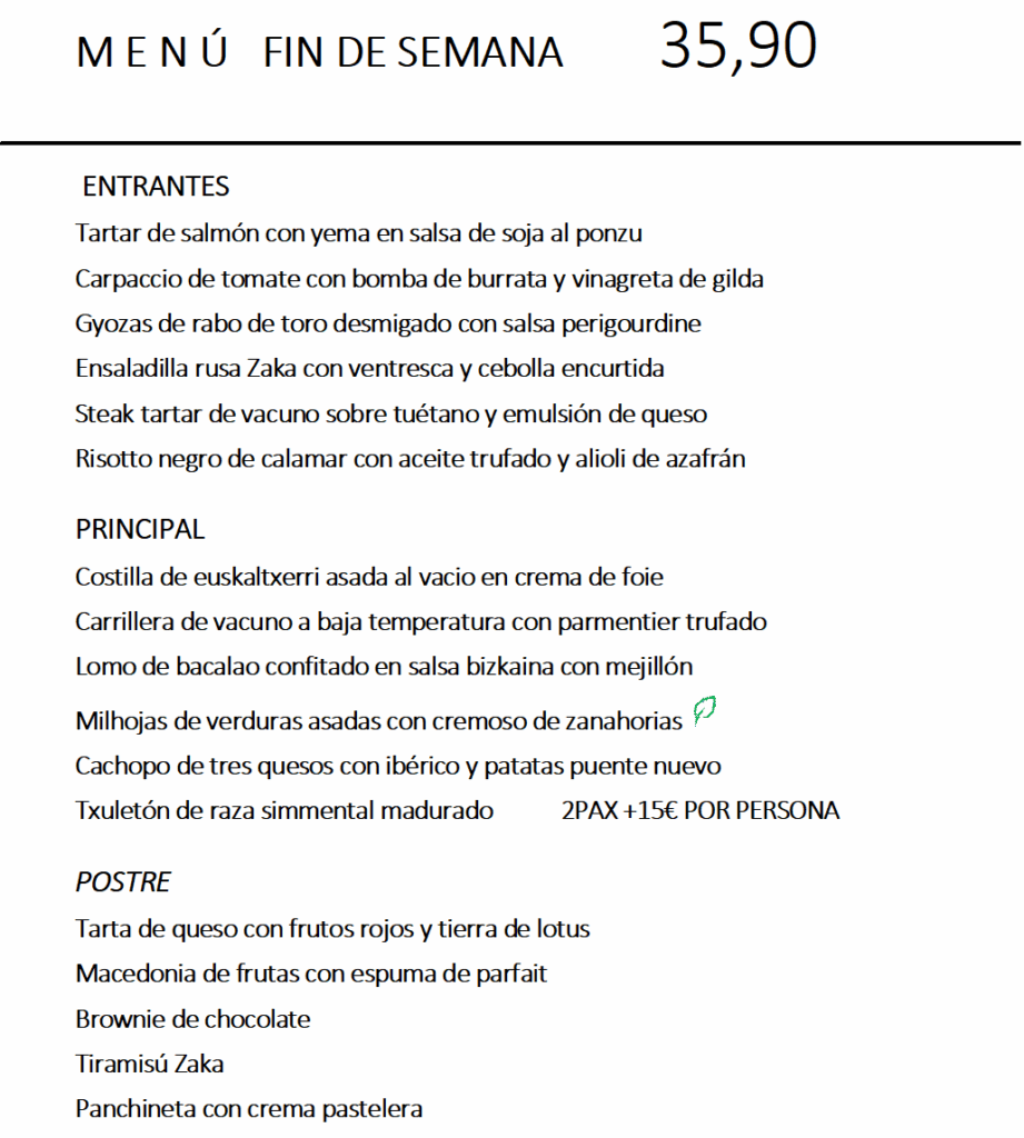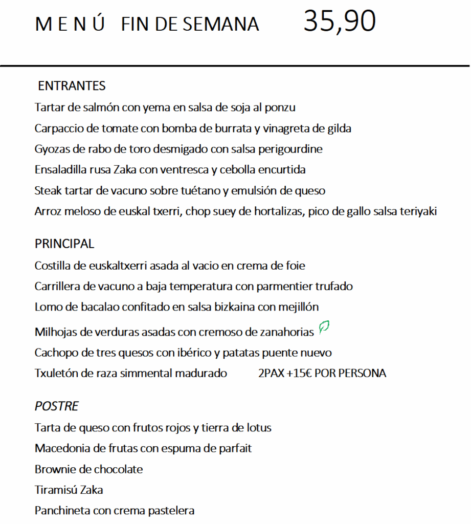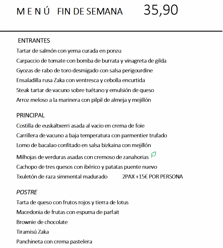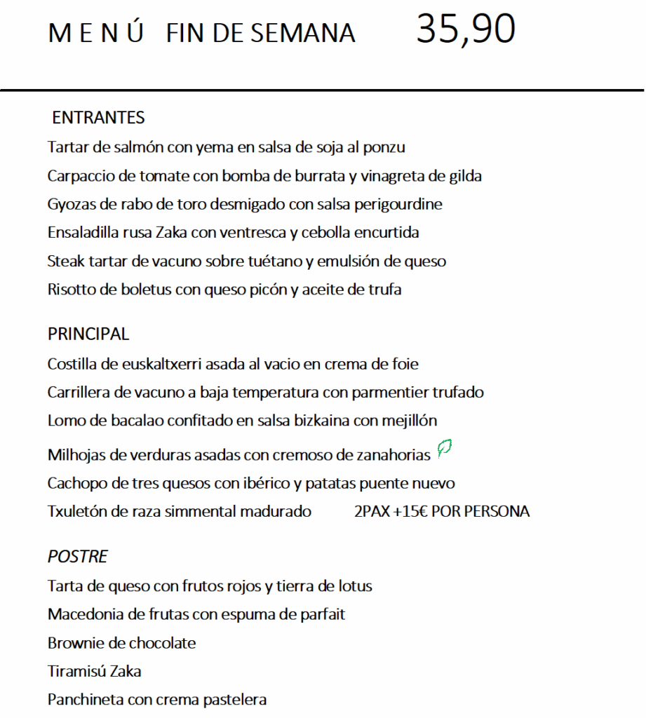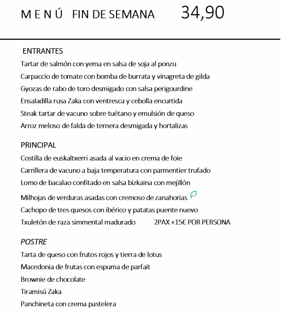 Menú fin de semana